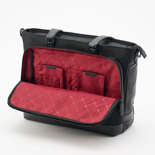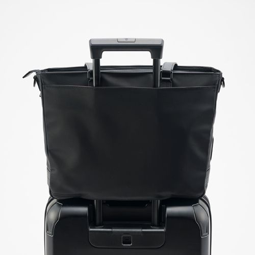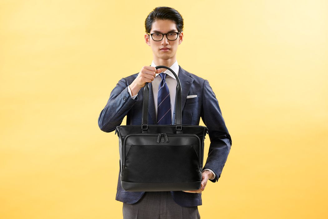 近年のピッティ・ウオモでも目立つトートバッグは、ビジネスの新しい定番。「アロックス ネロ トートバッグ」は、PCやタブレットを持ち歩くのにちょうどいいサイズ感で、ストラップの丁寧な仕立てが肩への負担も軽減してくれる。耐久性抜群のナイロンツイルをメインに、レザーをアクセントにあしらって洗練された印象も魅力だ。