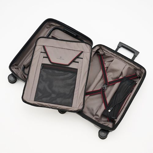 高性能な再生プラスチックSORPLAS™使用のトロリー「スペクトラ 3.0 エキスパンダブル グローバル キャリーオン」。機内持ち込みサイズで、メモを取るのに便利なペンやSIMピンが付属する。また、USBポートが内蔵されており、ケース内に入れたPCやモバイルバッテリーから給電が可能。元からタフな作りなのに、さらに安心の11年保証も驚きだ。このほか、容量が40%拡張するM、Lサイズも展開している。