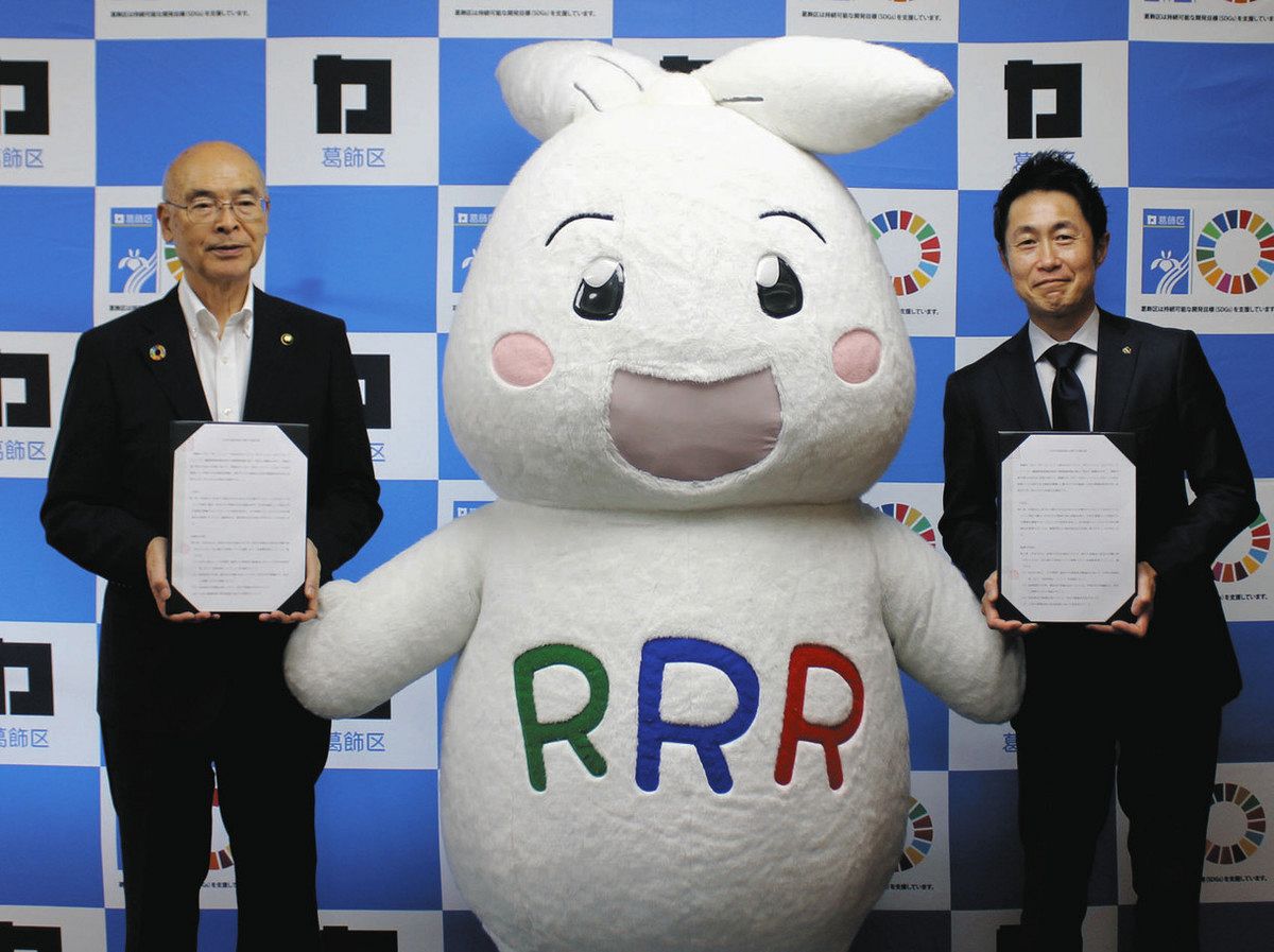 資源循環に関する民間事業者との協定は今回が7件目。6月24日の協定締結式で青木克徳区長は「区民や企業の協力を広げたい」、ライフのサステナビリティ推進部の皆川剛部長は「地域とのつながりを大切にして、サーキュラーエコノミー(循環経済)の拠点を目指したい」と話した。