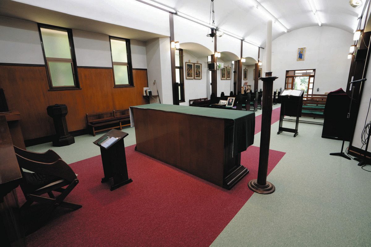 多磨全生園にある日本聖公会聖フランシス・聖エリザベツ礼拝堂の内部=東村山市で(木戸佑撮影)