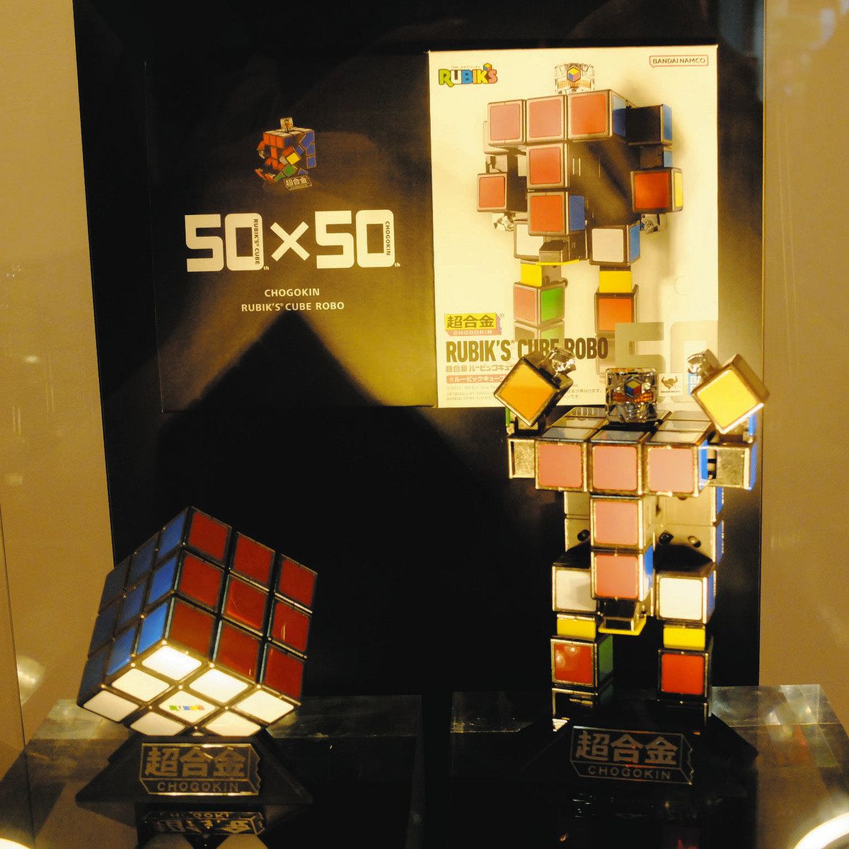 会場には同じ74年生まれの「超合金」とコラボしたロボットに変形する「超合金ルービックキューブ」、金沢の金箔(きんぱく)や、九谷焼など日本の伝統工芸と融合した「工芸ルービックキューブ」などの商品も並んでいる。