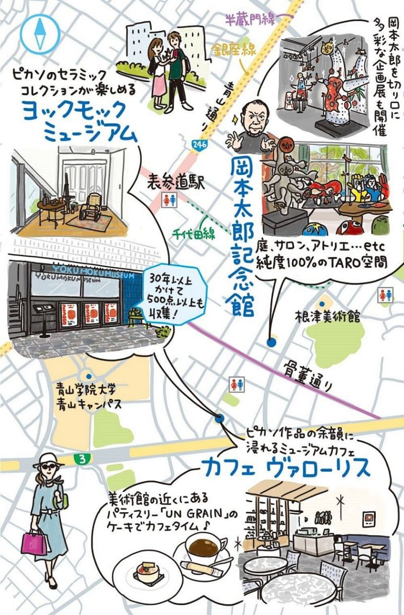 秋といえば芸術。今回は起点となる表参道駅とその周辺の青山一帯に点在する美術館をピックアップ。岡本太郎氏の自宅兼アトリエだった邸宅を改修した「岡本太郎記念館」、ピカソのセラミックコレクションを展示する「ヨックモックミュージアム」、カフェメニューやイベントを通してさまざまなアート体験が楽しめる「カフェ ヴァローリス」を紹介します。