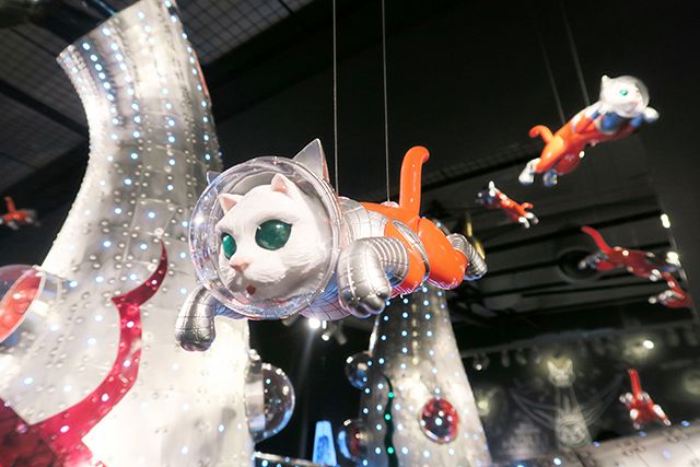 今回の企画展では、宇宙船に乗って地球に到達した『SHIP'S CAT/宇宙猫』が館内をジャックします。ヤノベ氏は現在、全長9mに及ぶ作品『BIG CAT BANG』を銀座の「GINZA SIX」に展示中で、本展はその対となるものです。「GINZA SIX」と当館は180度逆のアプローチからひとつの展覧会を構成するものであり、“ふたつでひとつ”なのです。ヤノベケンジと岡本太郎。そこにある“ふたつでひとつ”をどうぞお楽しみください。