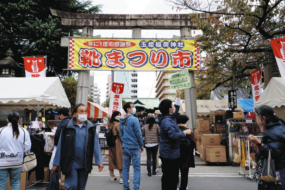 昨年の「靴のめぐみ祭り市」の様子=台東区の玉姫稲荷神社で