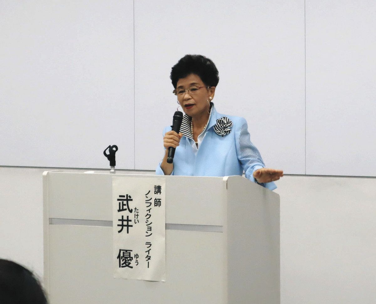 フォーラムで基調講演したノンフィクションライターの武井優さん=練馬区で
