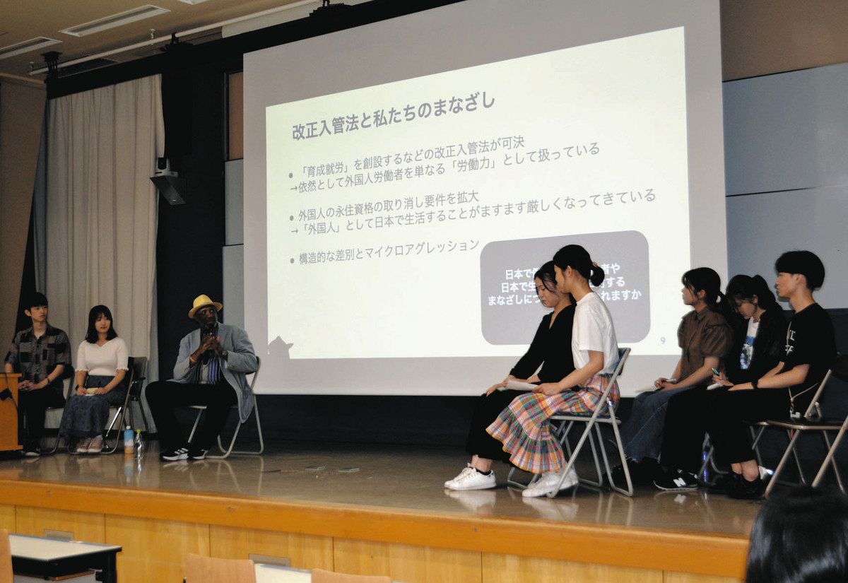 登壇した国際社会学部3年生の山本貴仁さんは「日本、アフリカ、世界を一歩引いたところから見ることで、気付くことがあると分かった。夏にガーナに留学するが参考になった」と話した。(岡本美紀)