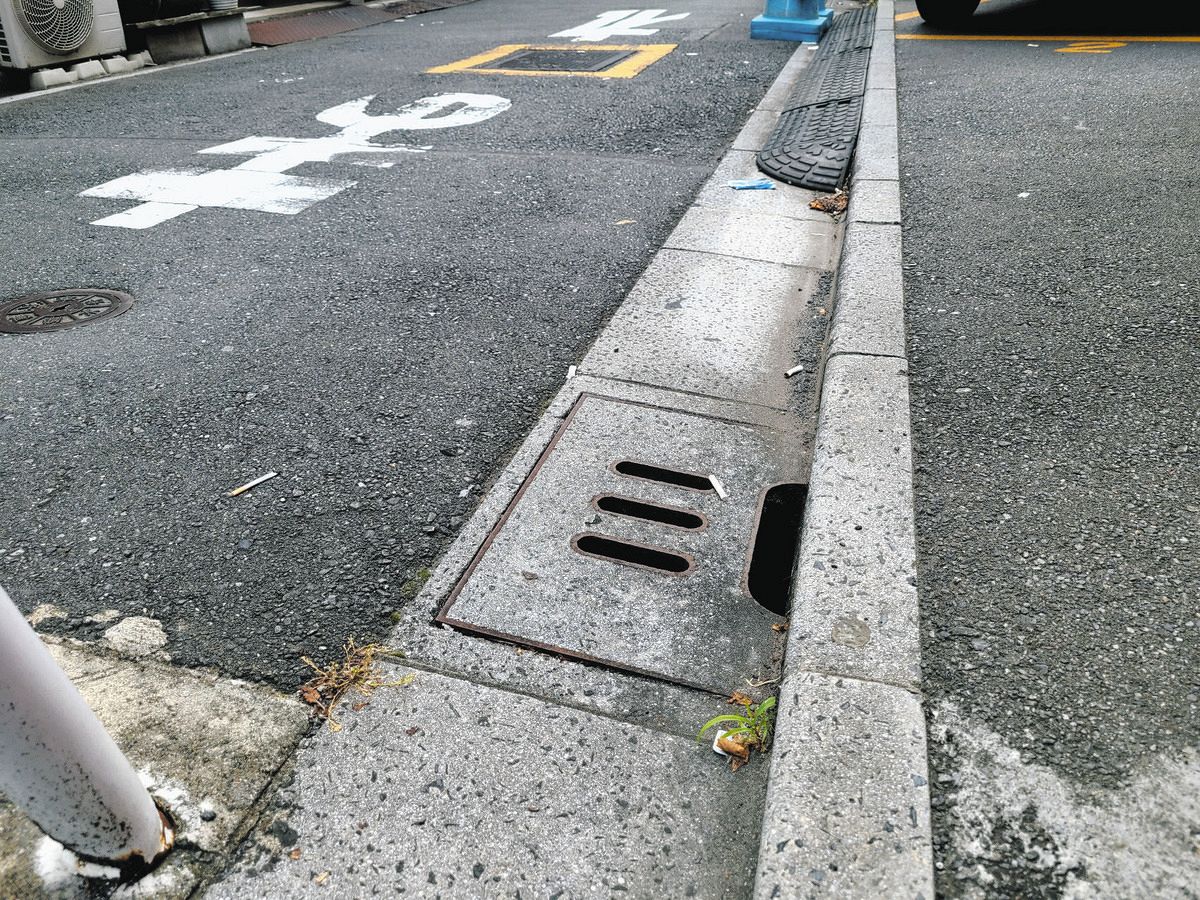 民泊施設近くの路上には、たばこの吸い殻が多数落ちていた=東京都台東区で