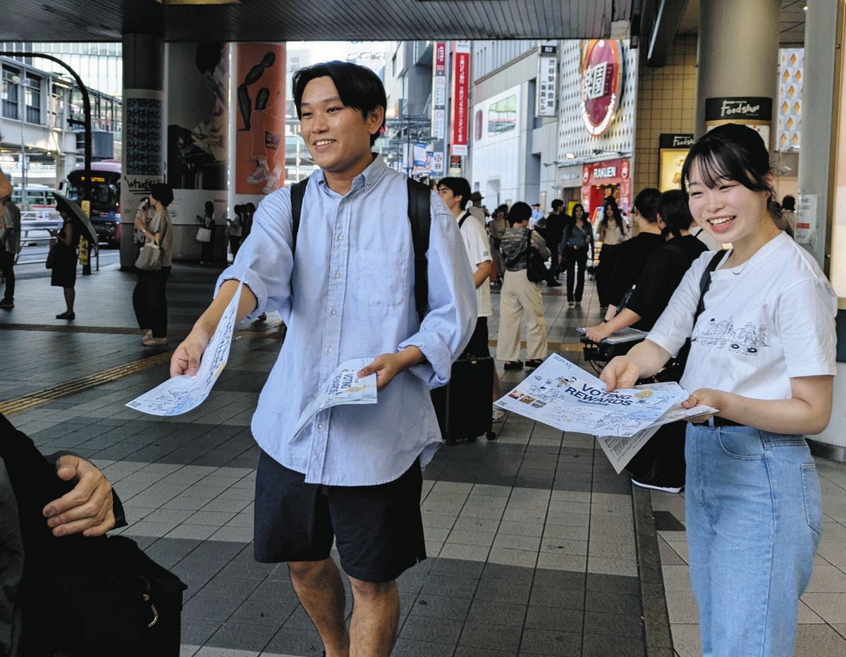 5日午後、渋谷駅周辺では、学生らがチラシを配ってPR。立教大4年の木野村遼さん(21)は「選挙はどの社会問題を解決するにも一番の入り口。そこにアクセスしやすくするため取り組みを広げたい」と話した。