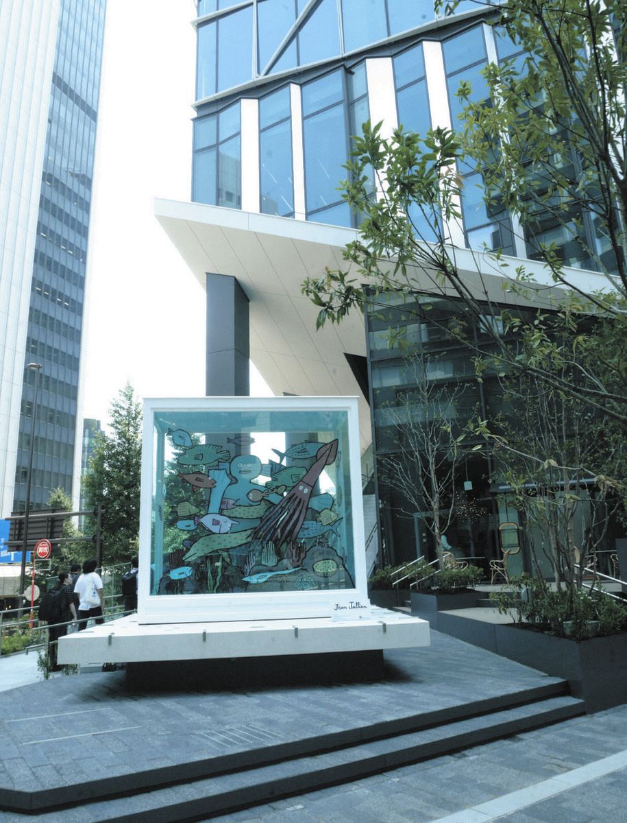 アート作品が置かれた渋谷アクシュの広場=東京都渋谷区で