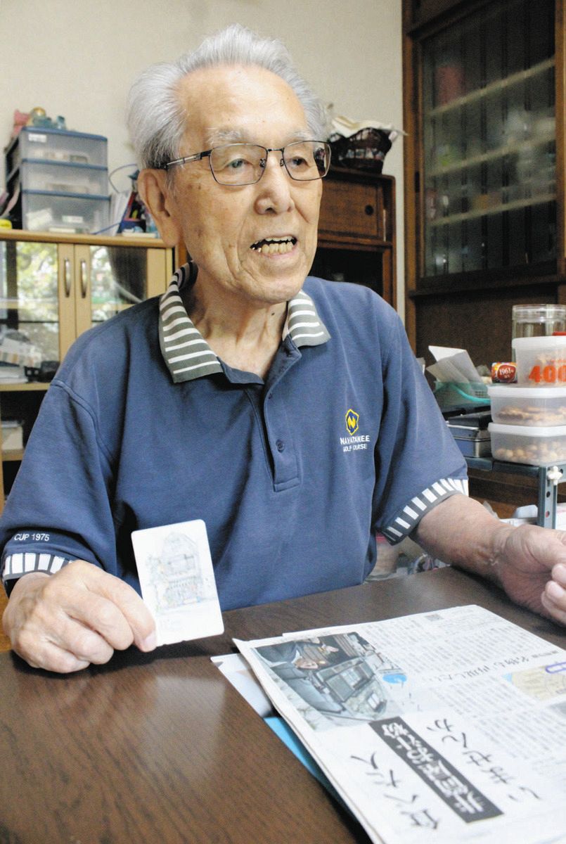 井筒屋のスケッチが描かれたテレホンカード=東京都立川市で