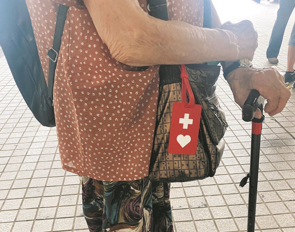 つえをつき、食品配布会場を訪れた91歳の女性=新宿区で