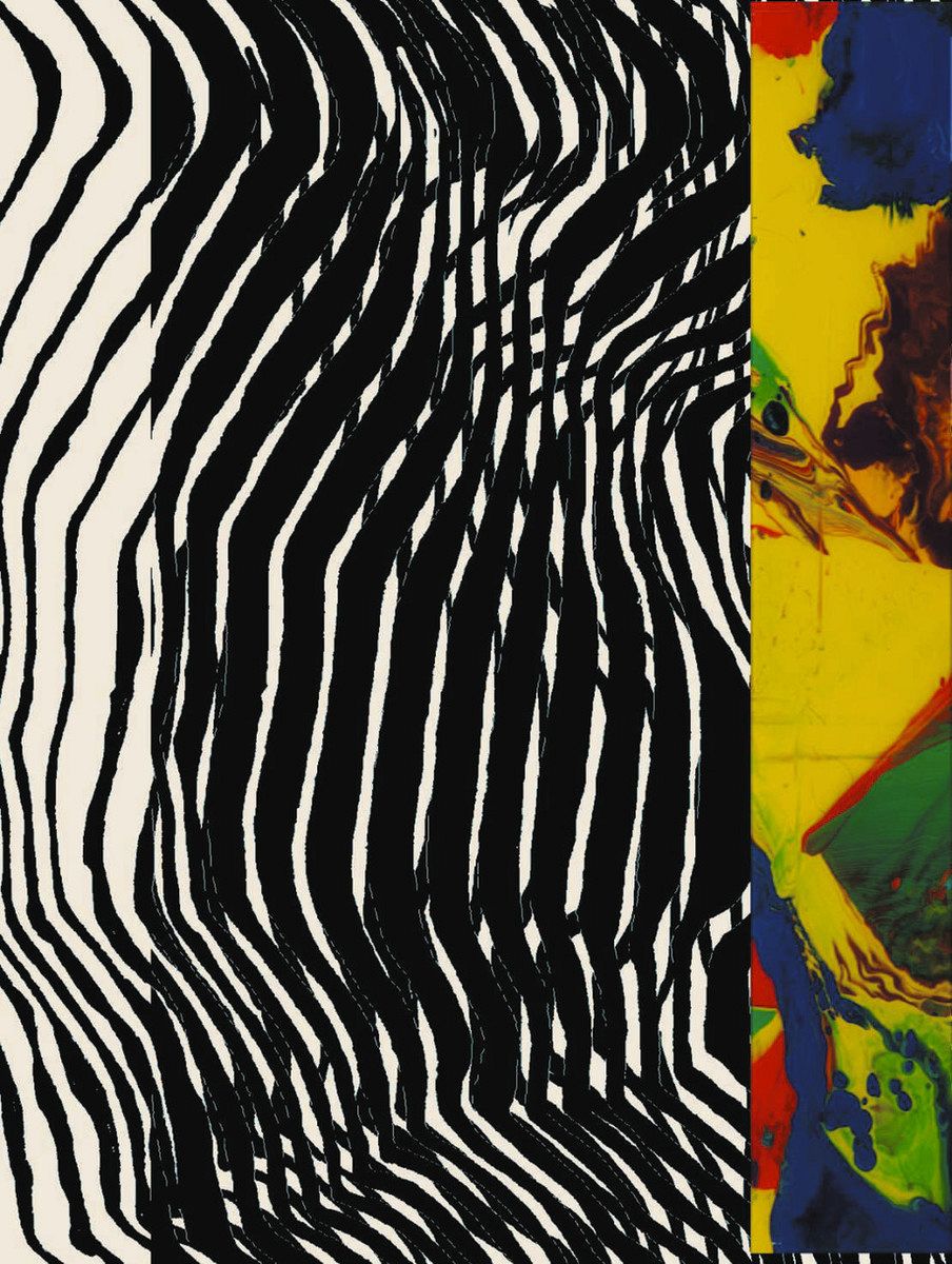 会場は、市ケ谷キャンパスの7階のフリースペース「Ma」。中央にテキスタイル作家の志村ひろみさん(文京区)の新作を掛け軸に見立てて飾り付ける。白と黒が交互にリズミカルな模様を織りなし、黄や青などのカラフルな部分と好対照を見せる=写真。茶わんは卒業生の今千春さん、由良薫子さんらの作品を使う。