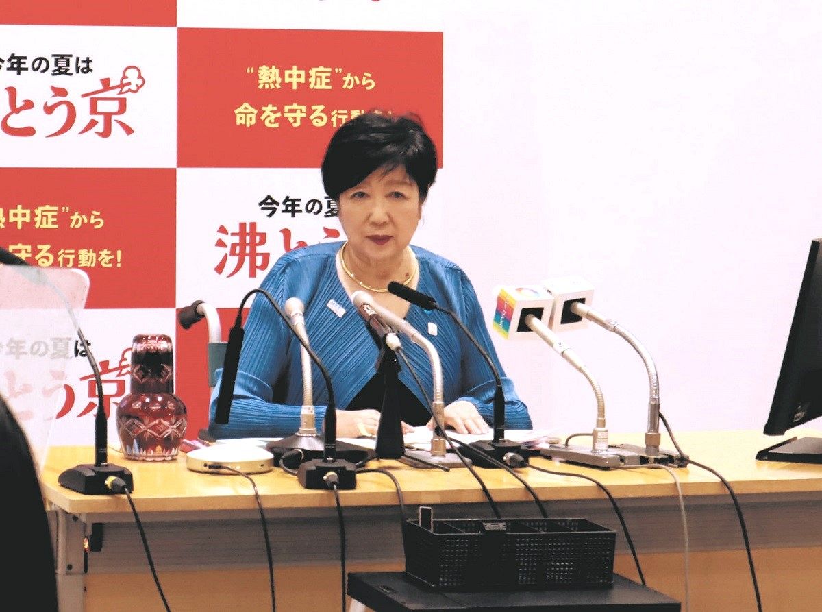 定例の記者会見で話す小池百合子都知事=23日、都庁で