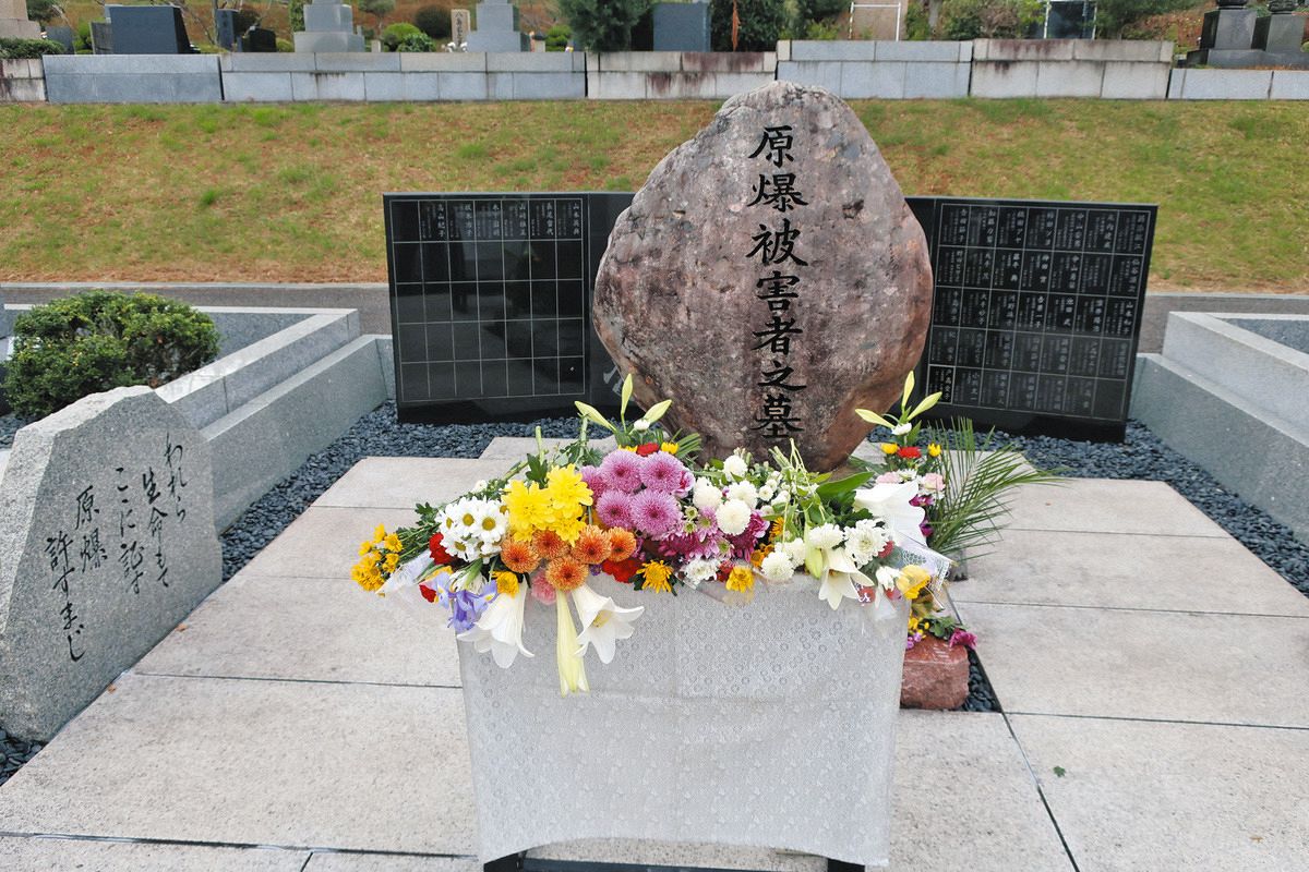 東京霊園の一角にある「原爆被害者の墓」は、長崎で被爆し、東京の被爆者団体「東友会」の副会長を務めた山本英典さん(2021年に88歳で死去)が2005年11月に建てた。墓石の脇には、被団協代表委員で東友会会長だった伊東壮さん(故人)が起草した「われら生命もてここに証す原爆許すまじ」の文字が刻まれた石碑が立つ。