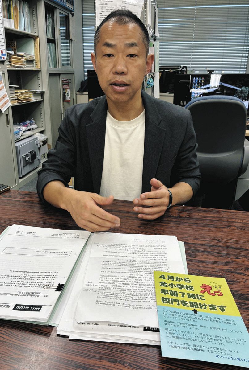 見守り員を置かない理由について、「午前7時半に開いている学校では、現在も問題なく過ごせている。開門を30分早める立て付けだ」と説明し、「預かり事業」ではなく「開門事業」と強調する。