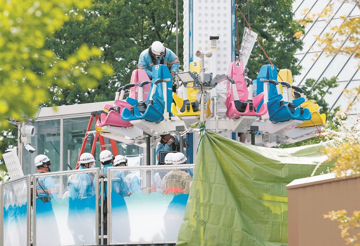 遊具は、支柱と周囲の座席からなる「フライングバルーン」で、支柱内部の油圧の変化で座席が上下する仕組み。警視庁が22日に実施した現場検証で、油圧を調整する「電磁弁」から内部の油が漏れていたことを確認したという。油漏れで圧力が低下し、座席が落ちてきたとみられる。