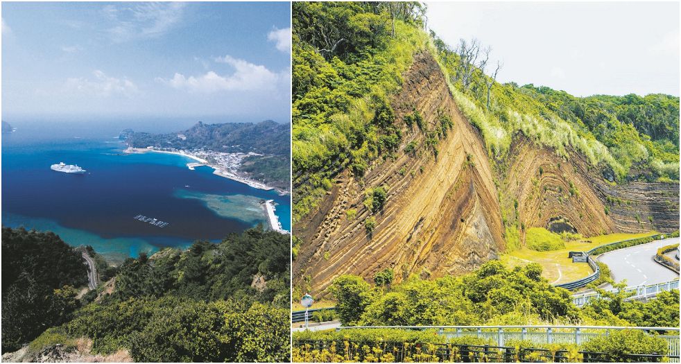(右)伊豆大島の地層大切断面=いずれも©地球の歩き方/Gakken