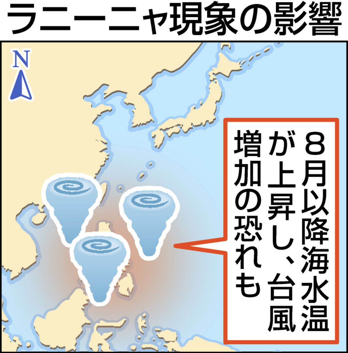 エルニーニョ現象はすでに一段落したが、現在は、その名残で台風の発生が少なくなっているようだ。気象庁は、秋にかけては「ラニーニャ現象」が発生する可能性があると予測。ラニーニャになると、台風が生まれる太平洋西部の海水温が高くなり、熱帯低気圧や台風の数も増加する恐れがある。
