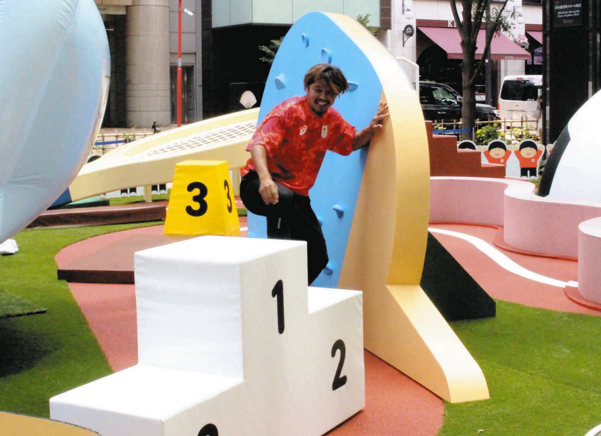 パリ五輪開幕に合わせ26日、東京都中央区日本橋室町3のコレド室町テラスで、子ども向けのアスレチック施設の開放が始まる。