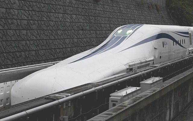 リニア中央新幹線の試験車=山梨県都留市の実験センターで