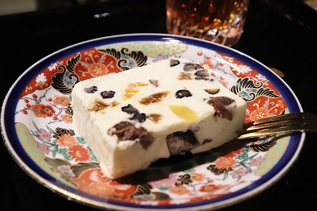なめらかなチーズや生クリームを合わせた生地に黒豆やドライフルーツが入ったアイスケーキの和風カッサータ(650円)