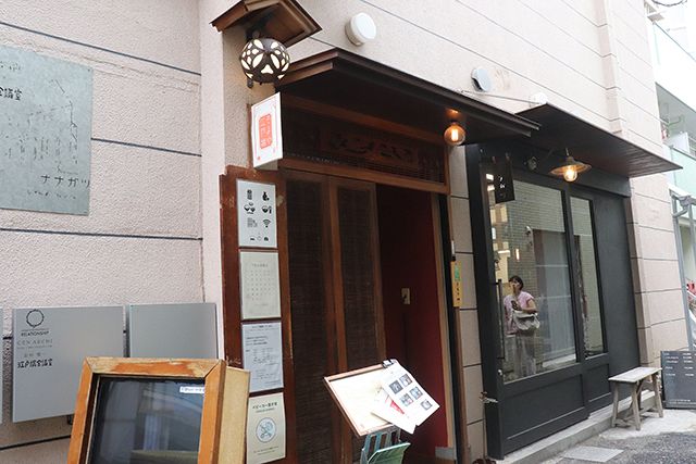今回訪ねるのは、そんな一角の古い2階屋に入っている「そよや江戸端」という店。古民家というより建物は元商店のようだから、古町屋喫茶とでもいおうか。