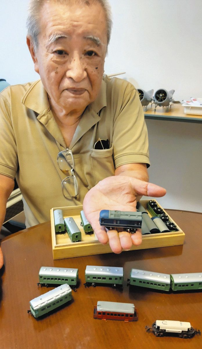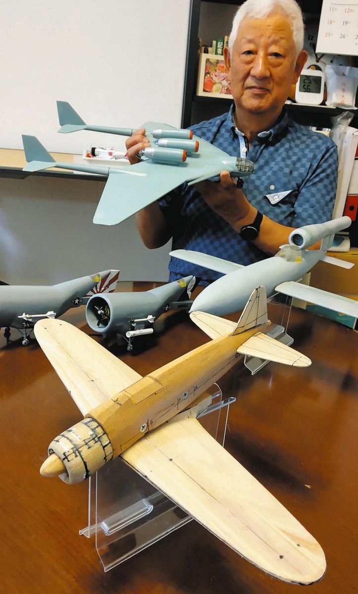 ソリッドモデルは、プラモデルの普及前の1950年代に流行していた。展示会は市内在住の愛好家で、流体制御機器設計会社経営の三浦徹郎さん(80)が主催。設計図や写真を参考に、ナイフで木を削って制作した軍用機中心の模型約55点を展示する。