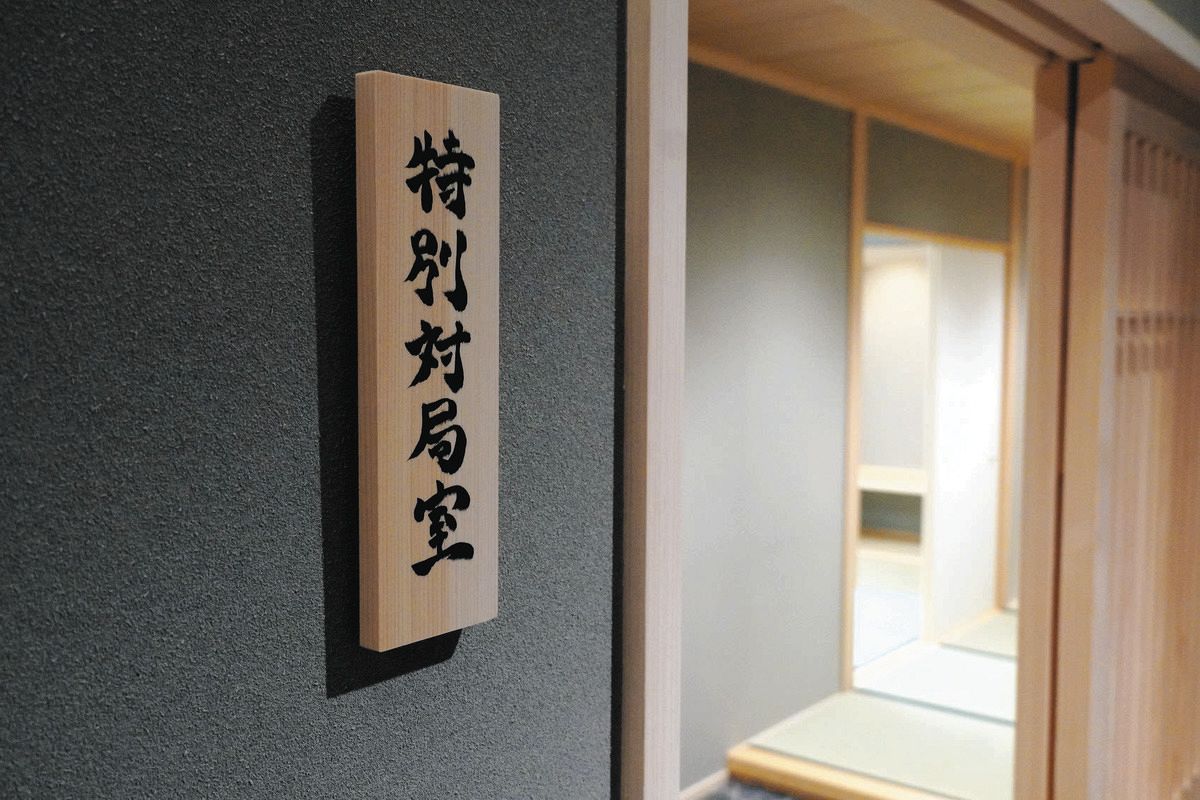 室内が一新されたのが歩月の間。こちらはいす対局向けに、硬めの畳が敷かれています。これまでは例外的に認められていたいす対局の機会が、今後増えるかもしれません。ほかにも休憩室や棋士室、女流棋士室などが新設され、棋士にとって使い勝手が良くなった印象です。