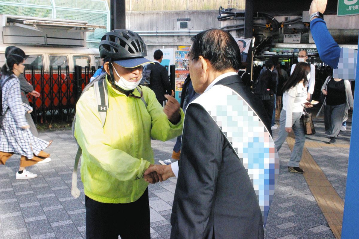 「おはようございます、いってらっしゃいませ」。22日午前8時のJR金町駅前(葛飾区)。元復興相で無所属前職の平沢勝栄があいさつを繰り返し、通勤客に手を振っていた。
