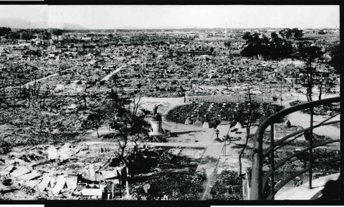 空襲で焼け野原になった津市中心部。男性は中央の「津観音」付近を通って幼稚園に通っていた=太田金典氏撮影、津市教育委員会提供