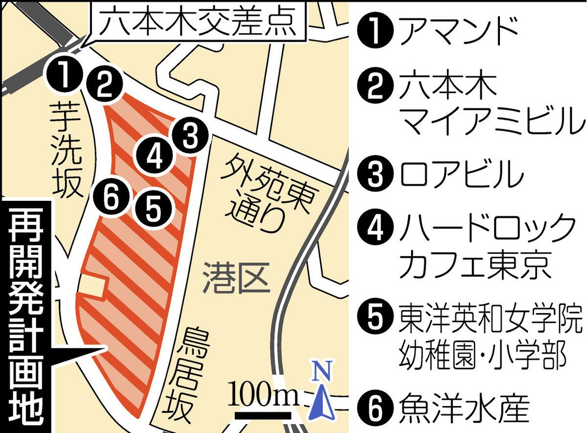 再開発エリアは、六本木交差点を起点に南に広がる。待ち合わせの定番スポット、老舗洋菓子店「アマンド六本木店」向かいの六本木マイアミビルから、外苑東通りを東京タワーに向かって歩き始めた。