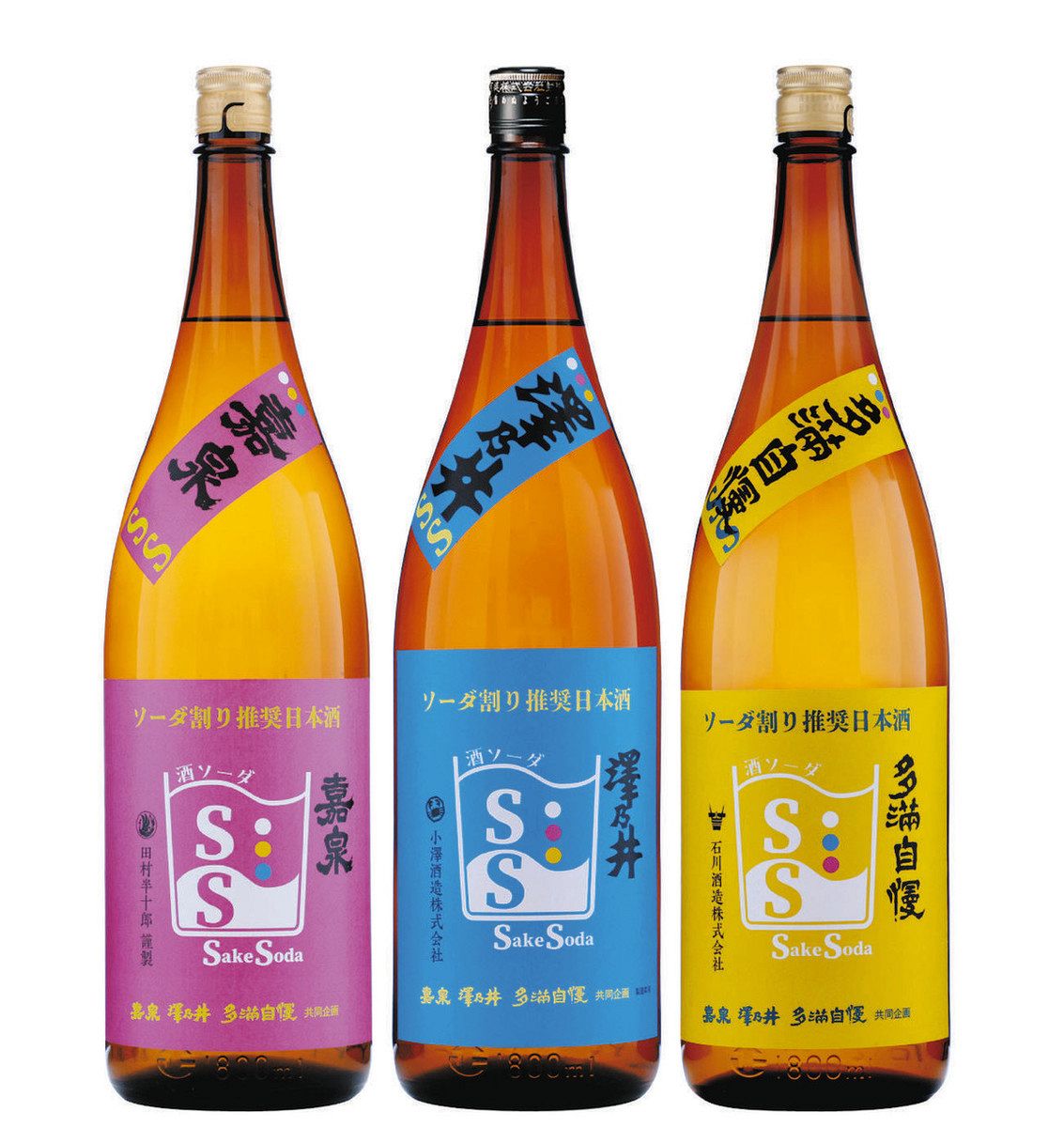 若い世代の日本酒離れもあり、新たな飲み方を発信しようと、3酒蔵が共同企画した。薄くなっても香りを楽しめるなど、各酒蔵が自社銘柄の中から、ソーダ割りを前提にした酒をそれぞれ選び商品化。ラベルは色と銘柄が異なるものの、デザインをほぼ統一した。
