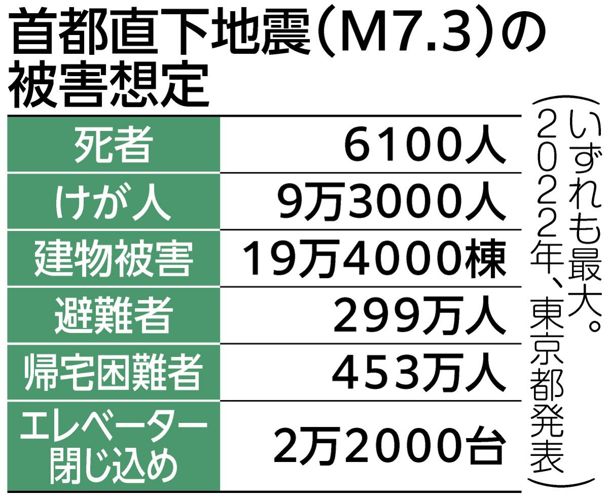 都の被害想定では、マグニチュード(M)7.3の首都直下地震による帰宅困難者は453万人。帰宅困難者は2011年の東日本大震災の発生時に大きな問題となった。鉄道が止まり道路には歩いて帰る人の長い列ができた。国の推計では都内で352万人が当日中に家に帰れなかった。