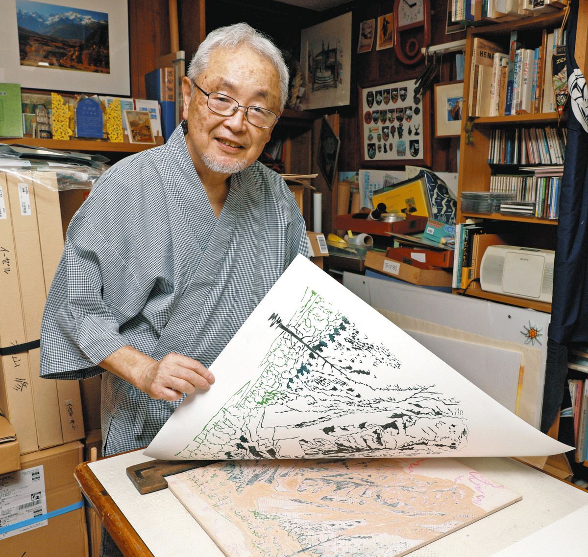 現在、創立88年を迎えた日本山岳画協会の代表幹事としても忙しい。「木と和紙と顔料と墨の美しく深遠な山岳版画の世界。まだ道半ばです」と語った。
