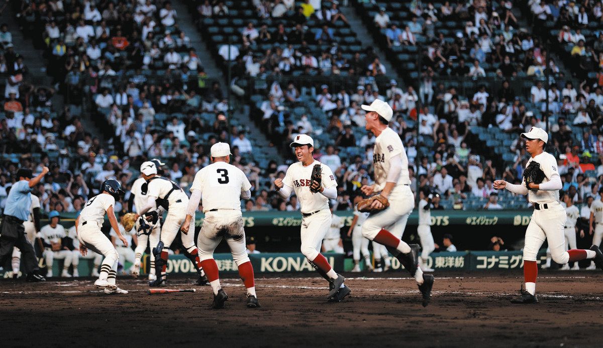 延長タイブレークの末に敗れたものの、宇野真仁朗主将(3年)は下を向かなかった。「一人一人が自分の役割を全うし、全員が全員を信頼していたチームだった。この仲間と野球をやれて良かった」。この経験は、西村選手ら下の世代に引き継がれていく。(佐藤航)