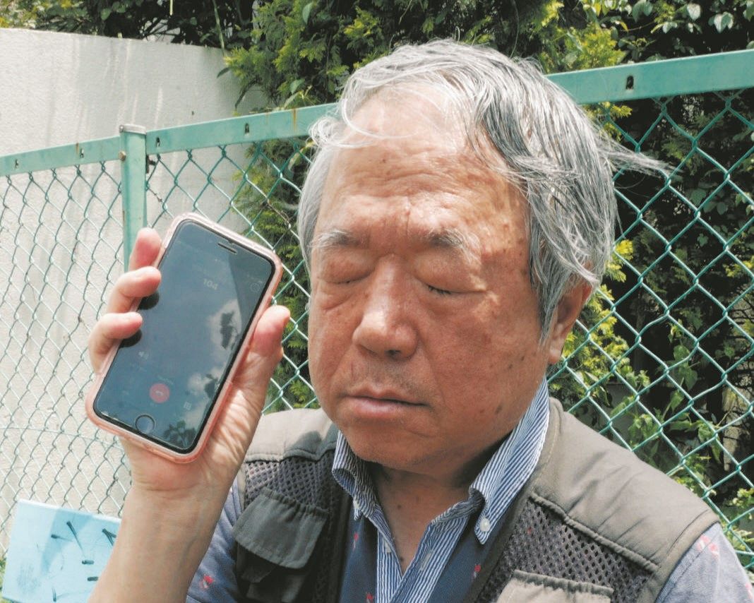 ふれあい案内を利用する鷹林茂男さん=東京都世田谷区で
