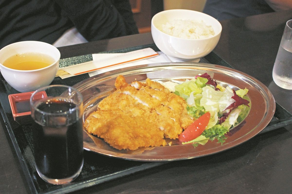 関東第一高校を応援する特別メニューのチキンカツ定食=東京・江戸川区のグリーンパレスで