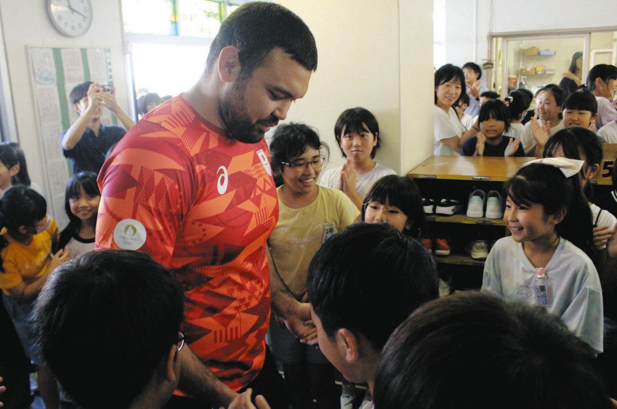 パリ五輪柔道男子100キロ級日本代表のウルフ・アロン選手が2日、母校の東京・葛飾区立小松南小学校を訪れ、「ありがとうの会」に出席して児童450人と交流した。