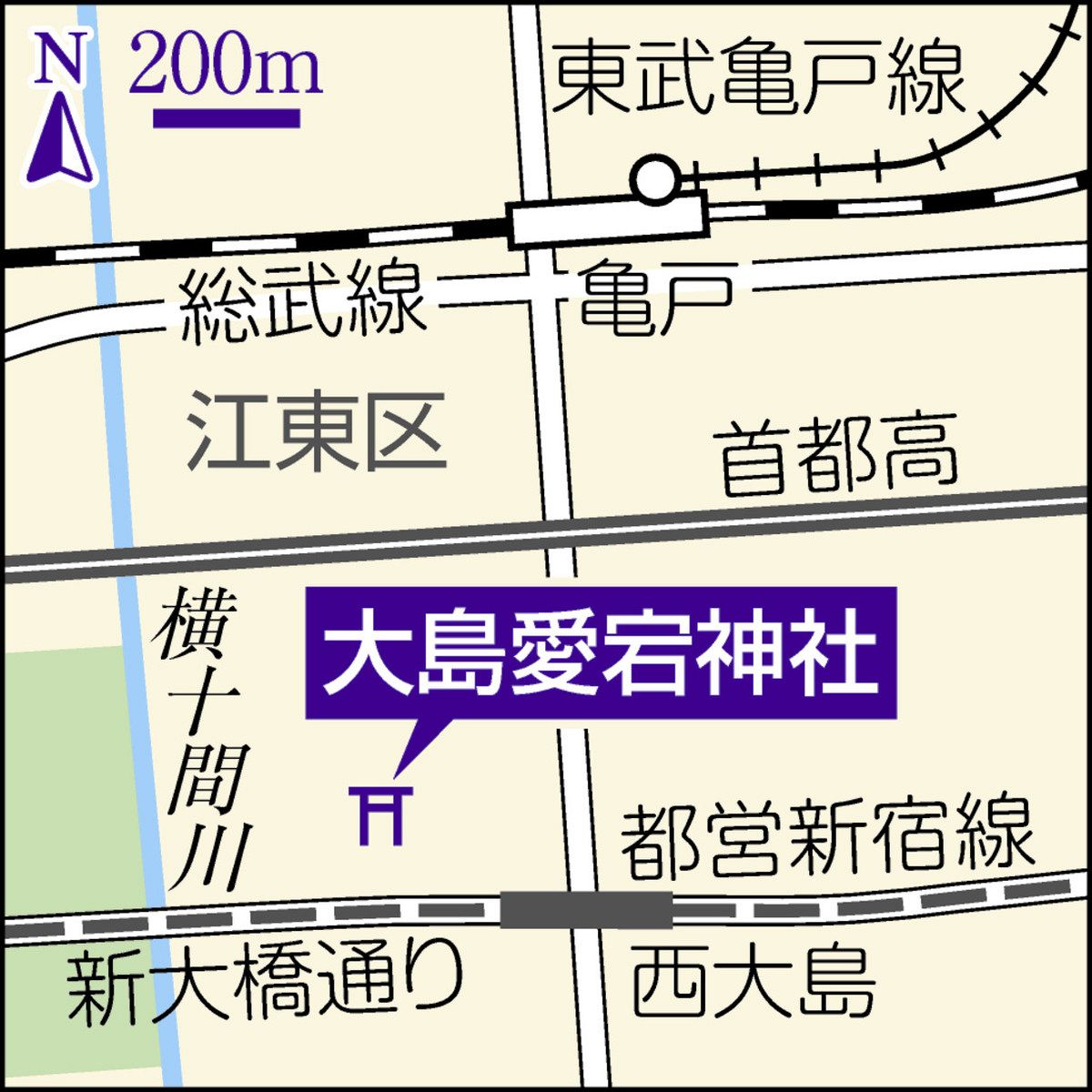 浅見さんによると、江戸時代には、神社は、現在地の西を流れる横十間川の畔(ほとり)にあったのではないかという。川辺には油問屋などが並び、愛宕神社は火伏せの神だった。