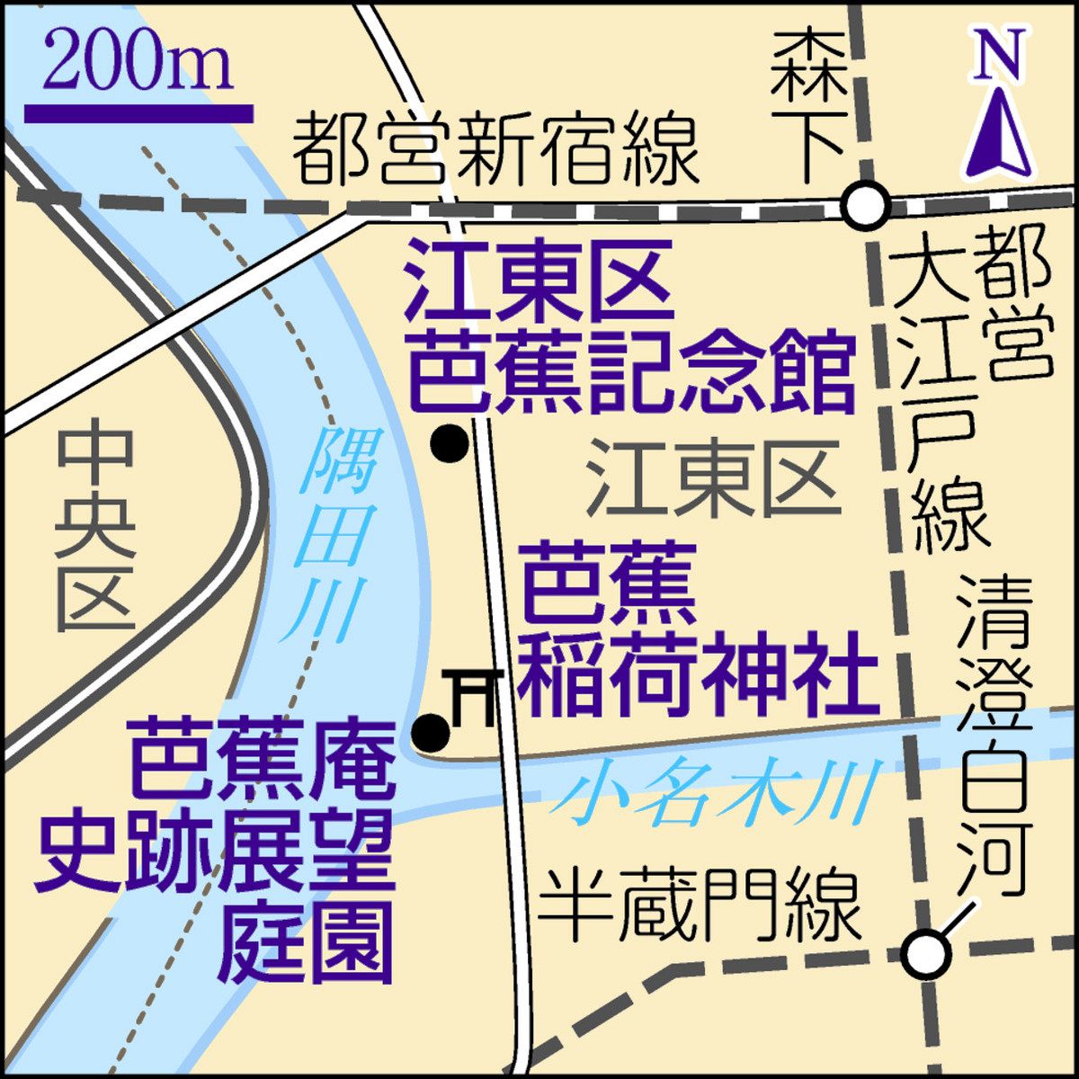 同じ江東区に芭蕉稲荷神社があり、俳聖が住んだ「深川の草庵(そうあん)」の跡とされている。