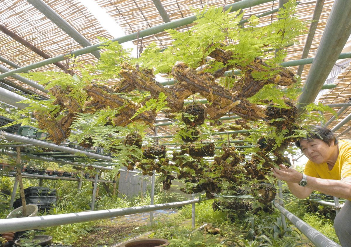夏に、軒下につるして涼感を楽しむ「つりしのぶ」の出荷が、東京都江戸川区の「萬園(よろずえん)」で最盛期を迎えている。