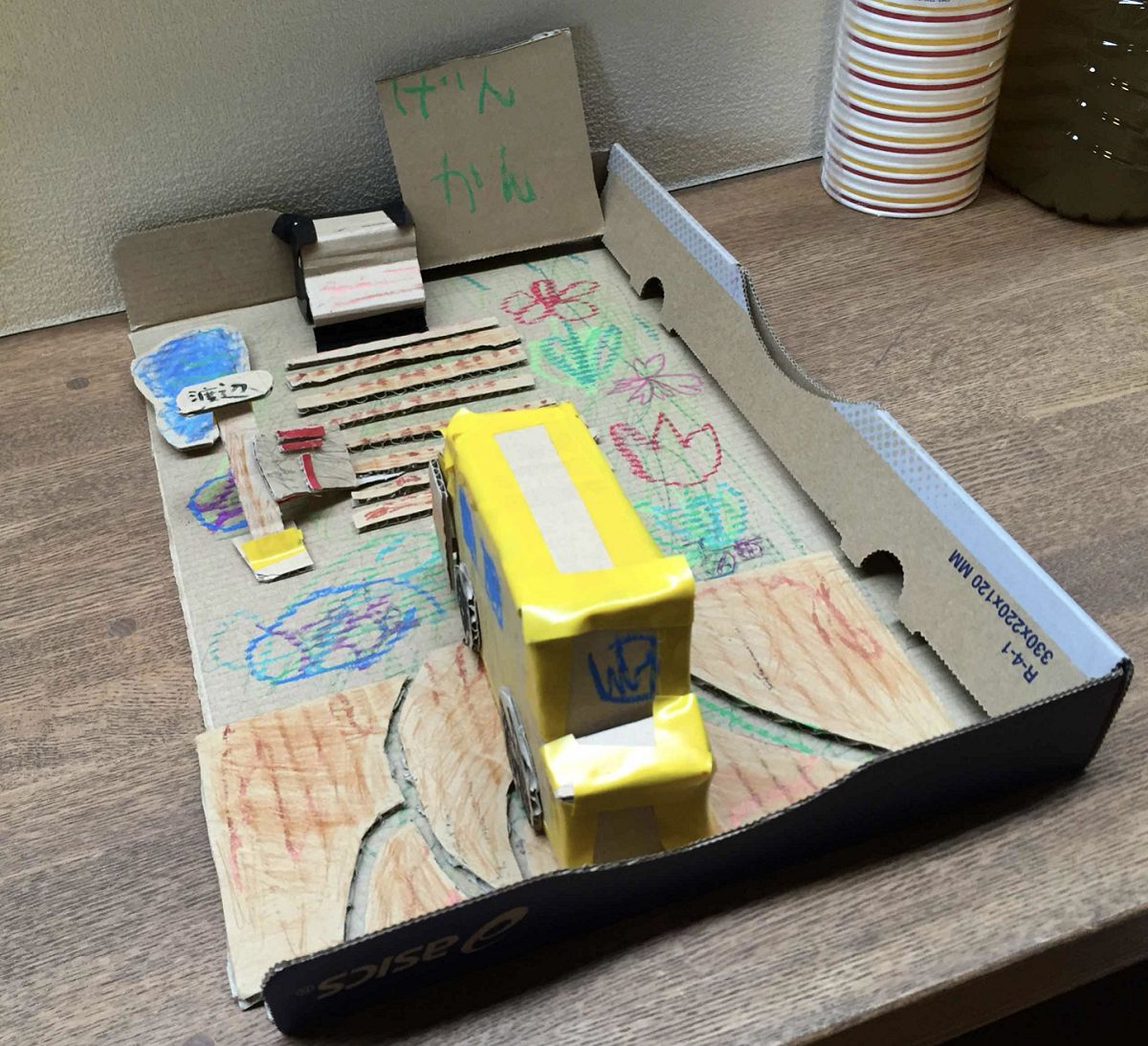 子どもたちと一緒に構想を練ったときには模型も作り、どんな雨庭がいいかを考えた(渡辺さん提供)