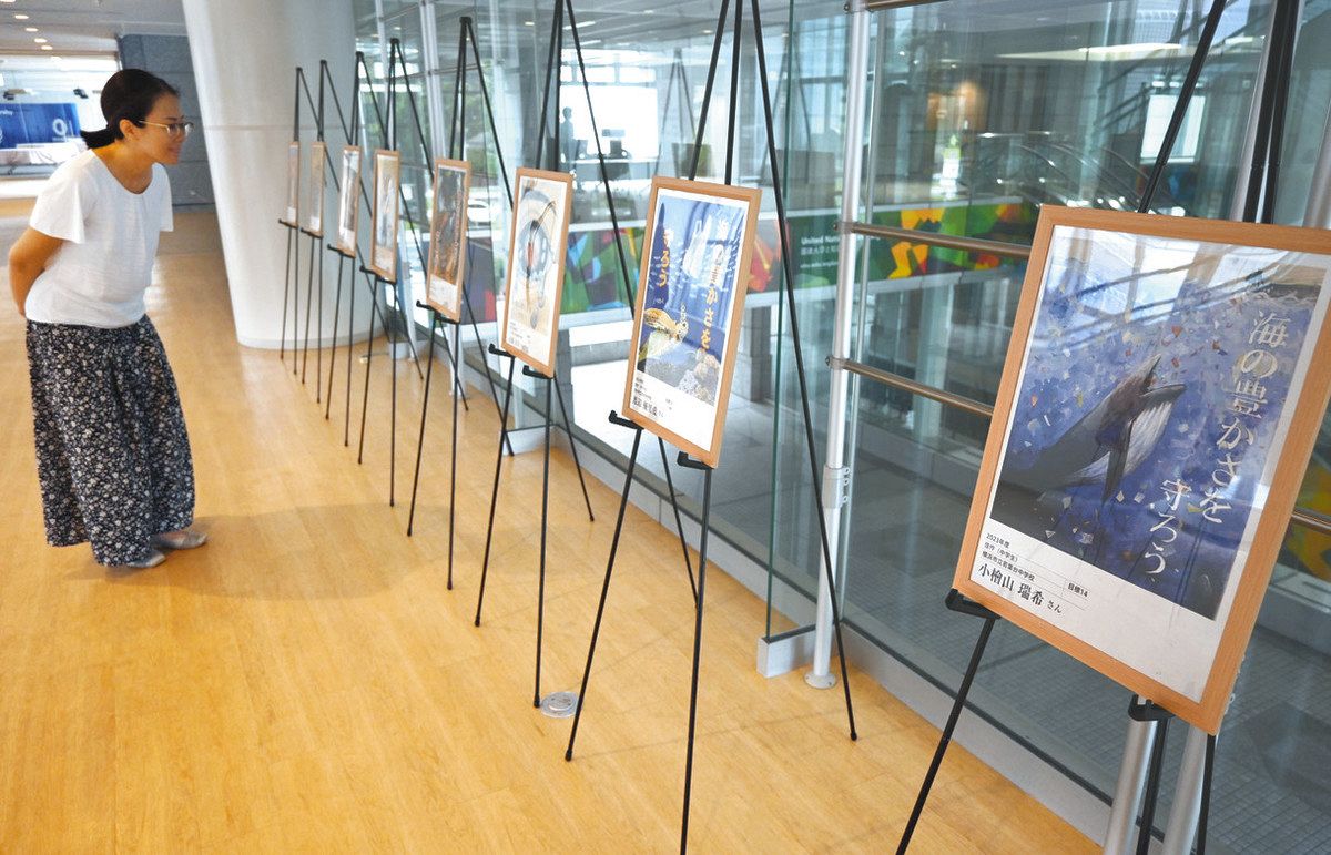 各地で過去の受賞作品を展示しており、今月30日までは渋谷区の国連大学本部2階で目標14「海の豊かさを守ろう」をテーマにした作品20点を紹介している。入場無料。