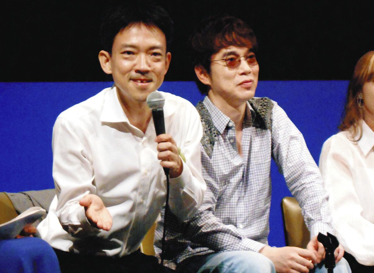 イベントに登場した川原繁人さん(左)と北山陽一さん=新宿区で