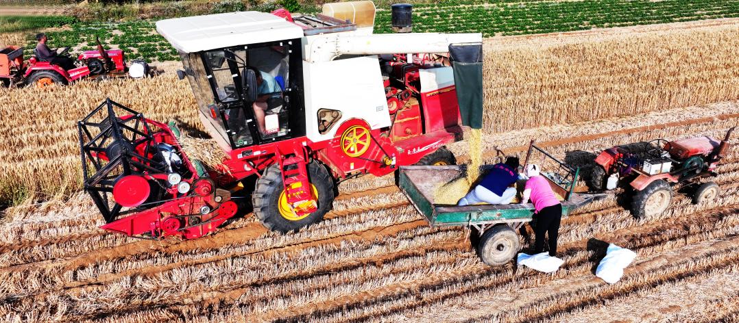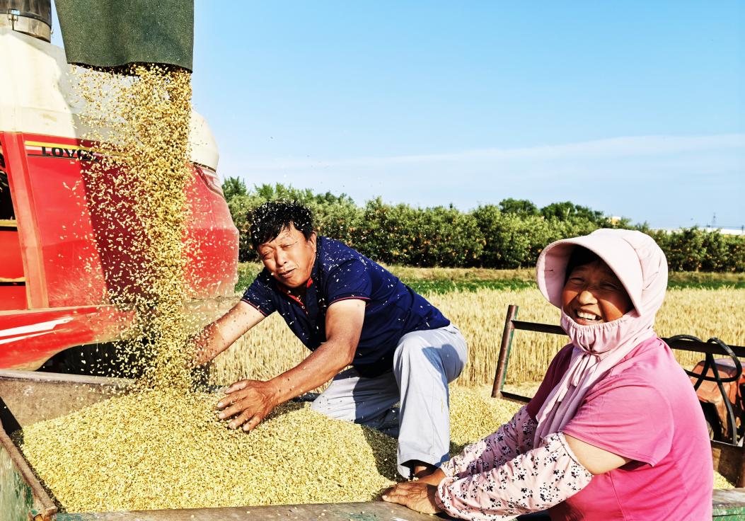6月の豊作の大地では、黄金色の麦の波が風にうねり、1台のコンバインが中国山東省招遠市阜山鎮東李格庄村を轟音とともに行き来し、ふっくらとした麦の粒が滝のように輸送車室に流れ込み、畑の地頭にはコンバインの忙しい姿が随所に見られ、生き生きとした豊作の光景がゆっくりと広がっている。
