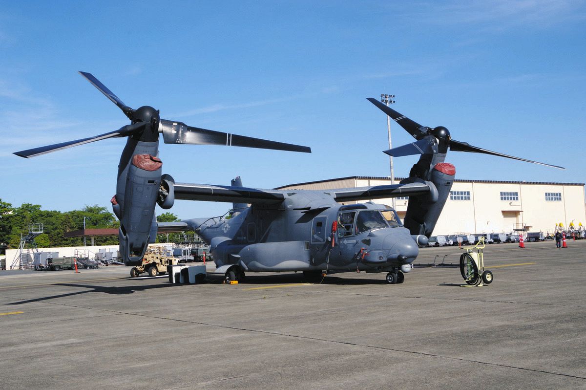 横田基地に配備されているCV22オスプレイ=5月18日、米軍横田基地で