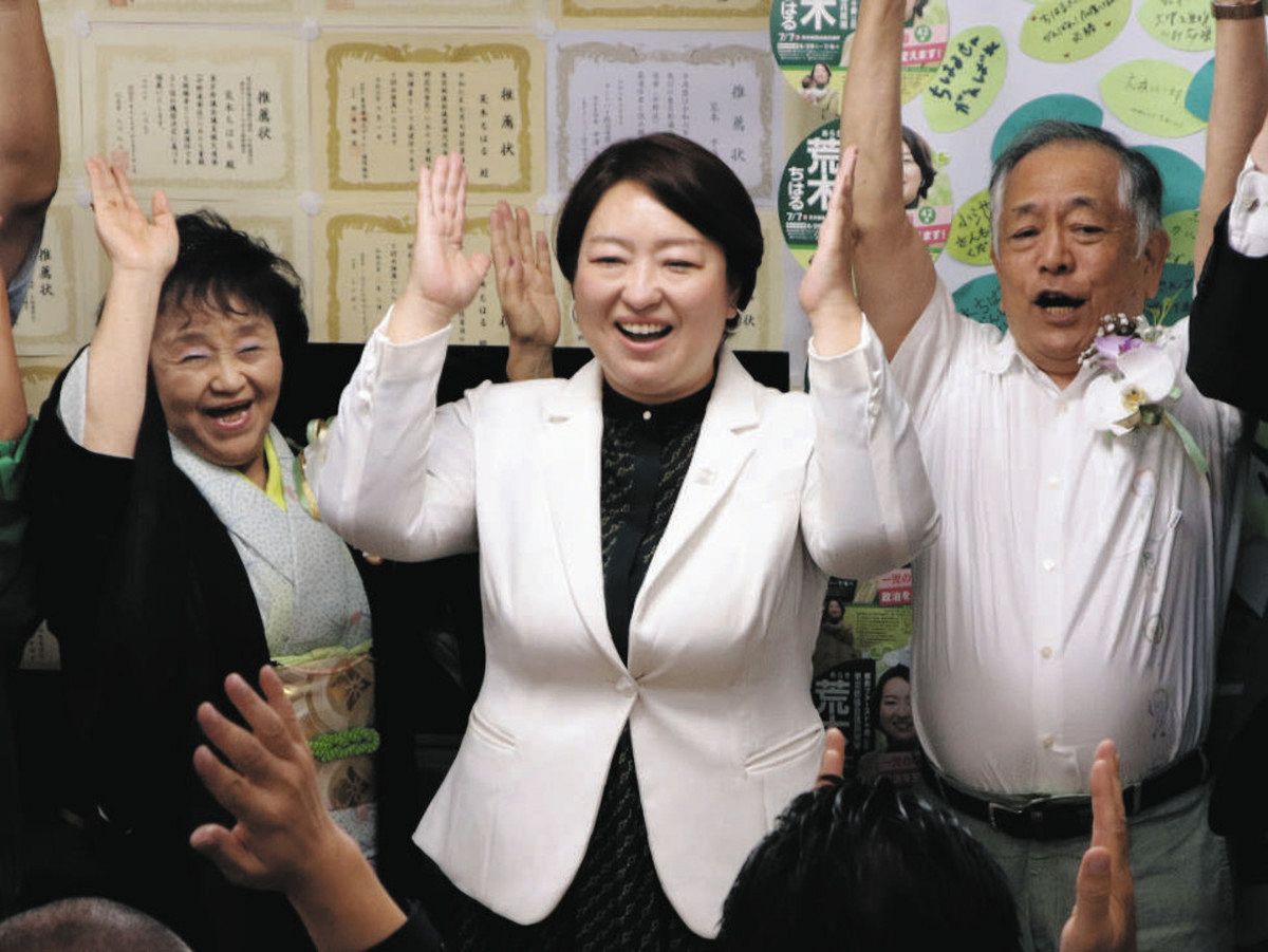 自民党と都民ファーストの会がそれぞれ候補を擁立し、知事選とねじれた形の東京都・中野区選挙区では、都民ファ元職の荒木千陽さん(42)が、自民や共産の新人3人との激戦を制し、3回目の当選を決めた。