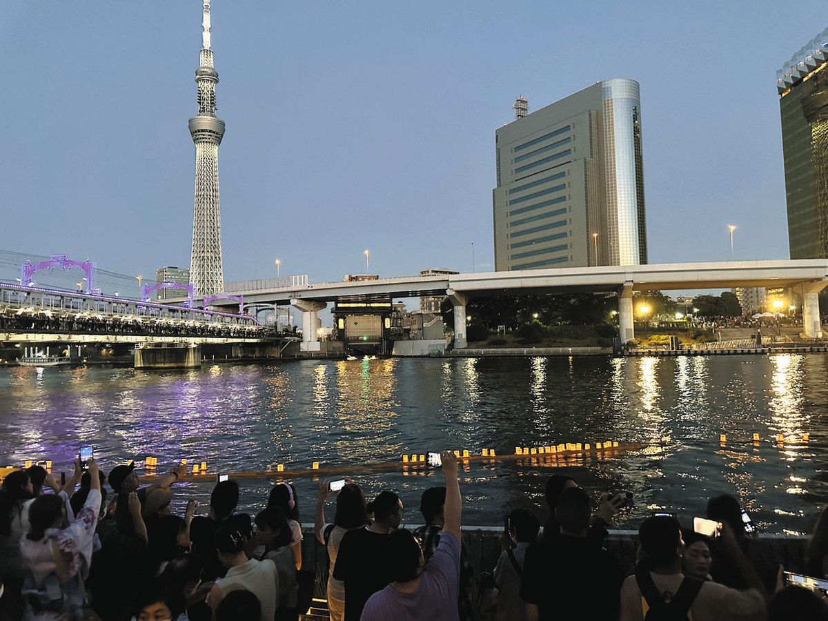 当日は午後6時半から式典と流し初めがあり、一般の灯籠流しは午後6時45分から。計約5000個が川面を彩る。問い合わせは浅草観光連盟=電03(3844)1221=へ。(中山高志)
