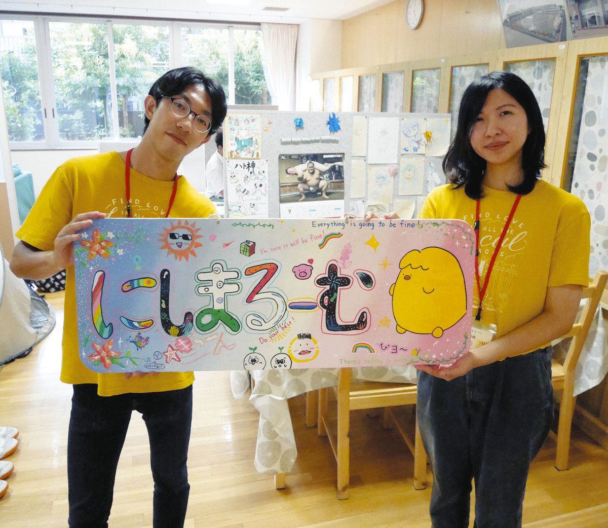 区教育委員会とネットワークは昨年3月、居場所づくりの協定を締結。モデル校となった同校が5月にるーむを開設すると、不登校気味だったが「ここなら行ける」と訪れるようになった子がいた。生徒の発案で、るーむの看板やキャラクターもつくられた。