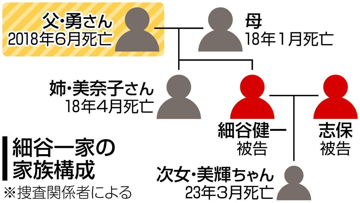 細谷健一被告は、会社経営者の父勇さんから後継者として期待をされていたが、関係者によると、2009年に志保被告と結婚した頃から、親子関係が悪化していったとみられる。